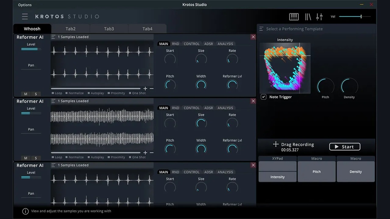 Master Rebalance機能ではどんなオーディオトラックでも、ドラム、ベース、ボーカルのボリュームを再調整できます。すでにバウンスされたミックスダウントラックにも使うことが可能です。