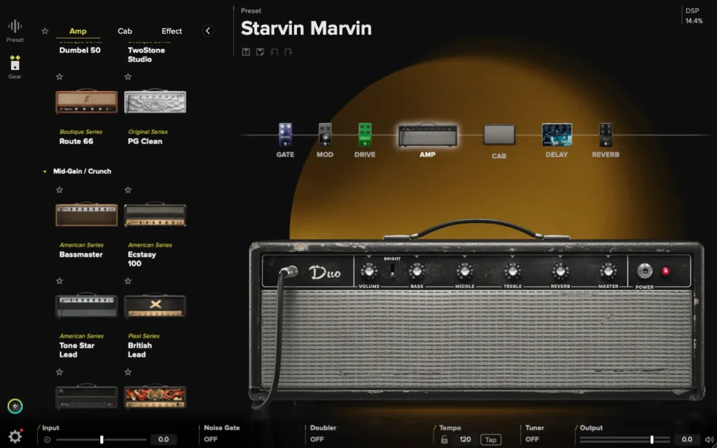 - 33種類のアンプモデル、25種類のキャビ、63種類のエフェクトを収録し、クリーン〜ハイゲインまで幅広くカバー