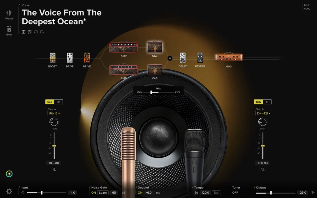 - 全く新しいキャビネット・シミュレーション:Positive GridエンジニアとSpectre Digital社との共同制作。伝説的なキャビネットやマイクの高精細IRを搭載